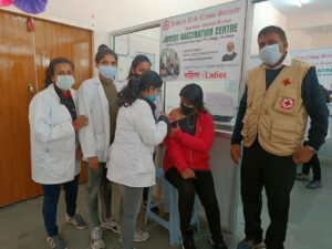 वैक्सीनेशन पर सहयोग करने वाले रेड क्रास स्वयं सेवकों में डा0 शीनम, डा0 संगीता, डा0 तरंग रावत, डा0 भावना जोशी, डा0 वैशाली, डा0 स्वप्निल मिश्रा, डा0 इन्दु गौतम, डा0 उर्मिला पाण्डेय, पूनम, जयप्रकाश रावत, गणेश, राहुल खाली, भूमिका गुड्डु, अजय भूषण, मनोज कफल्टिया, संचित जोशी, मोहित सैनी, पूजा खायनात, दिव्या थपलियाल, आस्था शुक्ला, साक्षी फुलैरा, मुस्कान, कनिका, आयुषी, शुर्भि अग्रवाल, सोनी गोगना, प्रमोद सिंह, संतोष कुमार की सराहनीय भूमिका रही ।