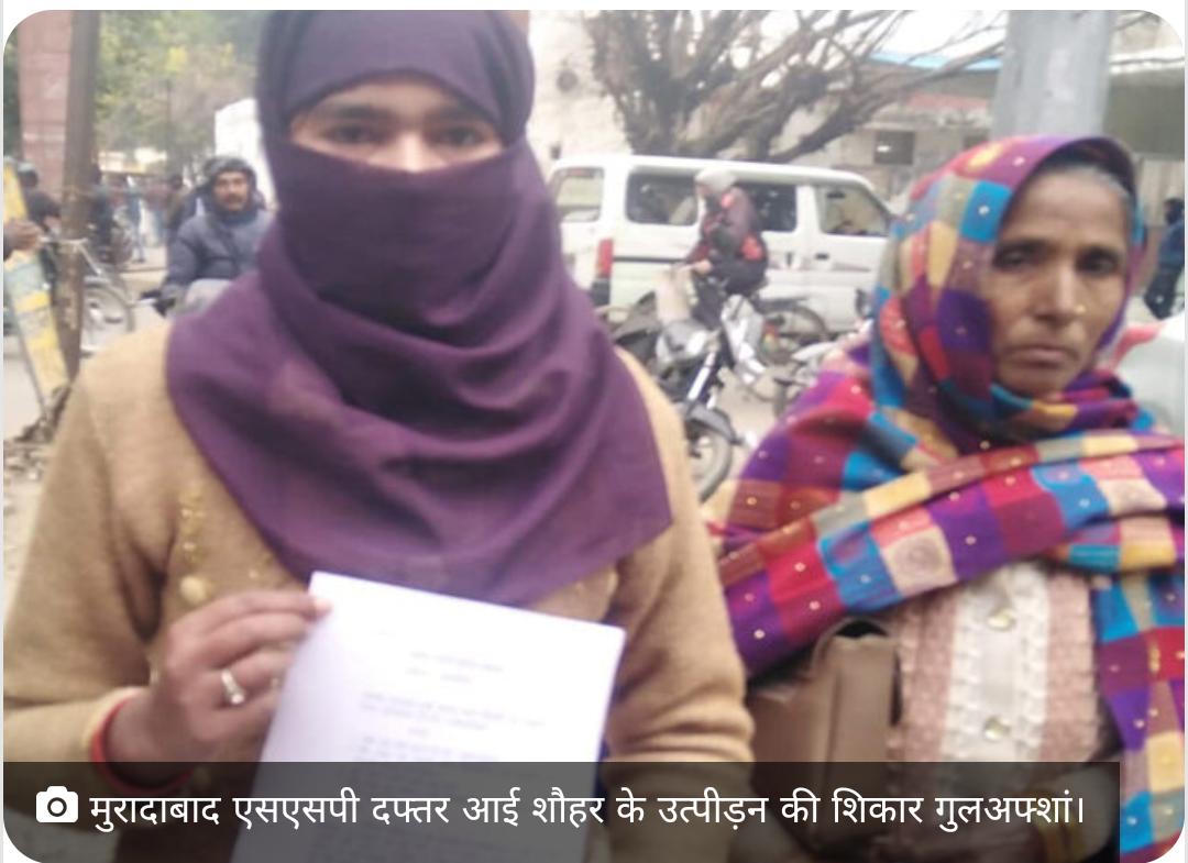 थाना डिलारी के क्षेत्र गांव मासूमपुर निवासी गुलअफ्शां का विवाह गांव के नईम से हुआ था। आरोप है कि गुलअफ्शां का पिता गरीब होने के कारण ज्यादा दहेज व उपहार नहीं दे सका था। गुलअफ्शां का कहना है कि उसके पिता ने लोगों से कर्जा लेकर उसका विवाह किया था। आरोप है कि दहेज की मांग करने वाला उसका पति अब उसे अक्सर प्रताण्डित करते रहते हैं जिसमें ससुराल वाले भी उसका साथ देते हैं। गुलअफ्शां का कहना है कि पति नईम उसे तलाक देकर दूसरी शादी करना चाहता है। उसने अमीर घर की लड़की से शादी करने की बात पक्की कर ली है।