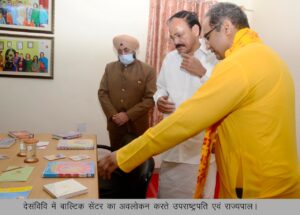 इससे पूर्व माननीय उपराष्ट्रपति ने देवसंस्कृति विश्वविद्यालय में स्थापित एशिया के प्रथम बाल्टिक सेंटर का अवलोकन किया। उन्होंने बाल्टिक देशों में सेंटर द्वारा चलाये जा रहे कार्यक्रमों को सराहा। साथ में उपराष्ट्रपति एवं राज्यपाल ने कुटीर उद्योग, हस्तकरघा का अवलोकन किया। माननीय उपराष्ट्रपति ने प्रज्ञेश्वर महादेव का पूजन कर विश्व शांति, राष्ट्र की सुख एवं उन्नति की कामना की। उन्होंने प्रज्ञेश्वर महादेव मंदिर में रुद्राक्ष के पौधे का रोपण कर पर्यावरण संतुलन के लिए संदेश दिया।