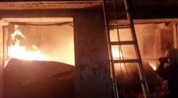 हैदराबाद के भोईगुड़ा आड़ी में कबाड़ के गोदाम में भीषण आग लगने से बड़ा हादसा हो गया। इस आग में करीब 12 लोगों के फंसे होने की आशंका है, जबकि अब तक 11 लोगों के शव बरामद हुए हैं। मिली जानकारी के अनुसार घटना के समय ये लोग गोदाम के अंदर ही सो रहे थे। भीषण आग के कारण एक दीवार गिर गई, जिससे वहां फंसे लोग बाहर नहीं निकल पा रहे हैं। फिलहाल एक व्यक्ति को बचा लिया गया, उन्हें इलाज के लिए अस्पताल में भर्ती कराया गया है।