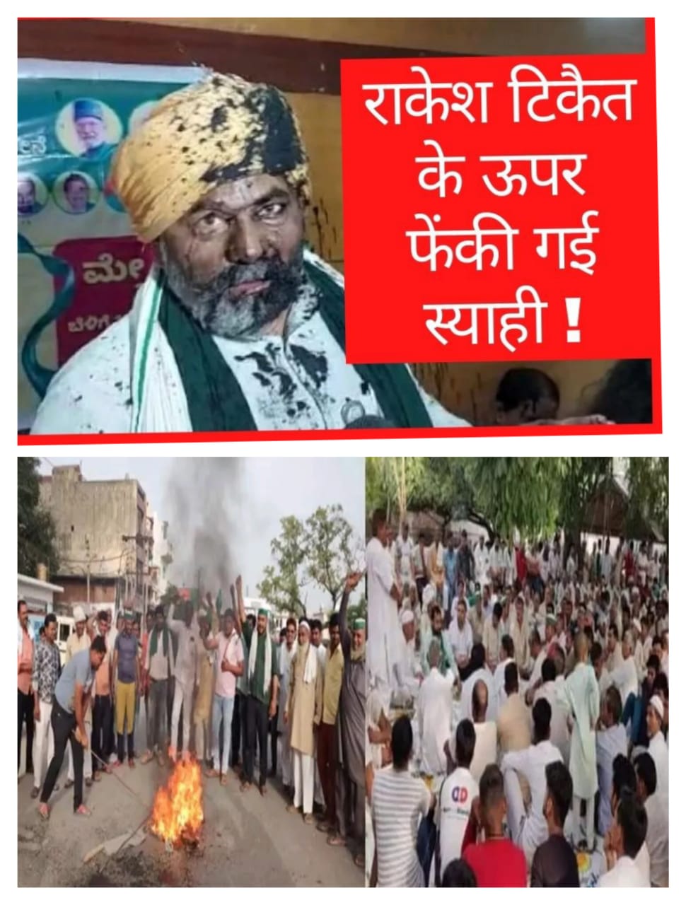 अग्रवाल मंडी टटीरी में भारतीय किसान यूनियन युवा के जिला अध्यक्ष चौधरी हिम्मत सिंह के नेतृत्व में कार्यकर्ताओं ने हंगामा किया। उन्होंने स्याही फेंकने वालों की गिरफ्तारी की मांग कर उनके पुतला का दहन किया। दोघट में राजेंद्र चौधरी के आवास पर लोगों की बैठक हुई। स्याही फेंकने की निंदा की गई। पूर्व प्रधान धर्मेंद्र राठी ने कहा कि किसान नेता चौधरी राकेश टिकैत पर स्याही फेंकना किसान बिरादरी का अपमान है, जिसे किसी भी सूरत में बर्दाश्त नहीं किया जाएगा। उन्होंने स्याही फेंकने के मामले की गंभीरता से जांच कर कार्रवाई की मांग की।