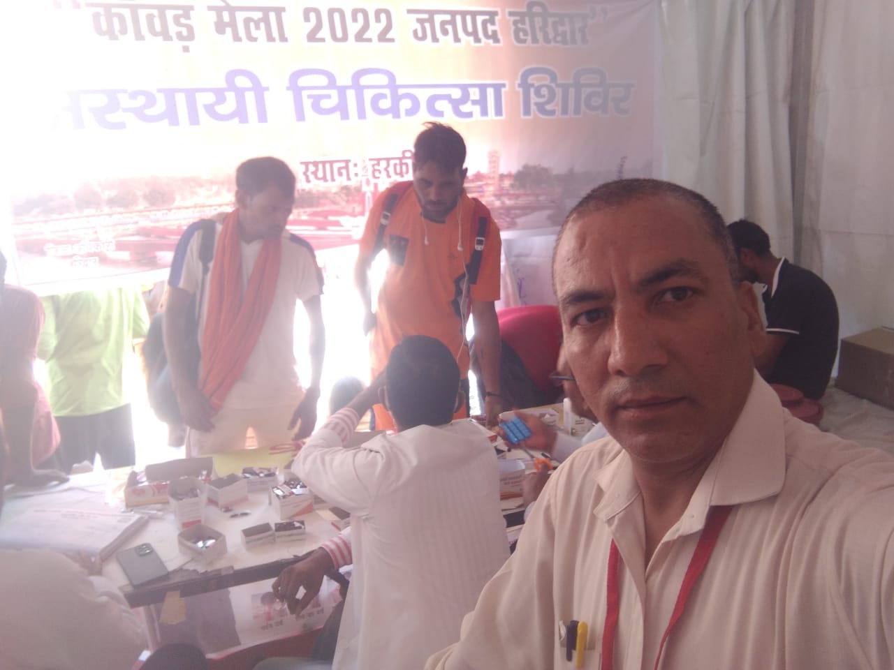 कोरोना महामारी के 2 वर्ष बाद हरिद्वार में कावड़ मेला लगा हुआ है जहां से देश के कोने कोने से शिवभक्त आकर श्रद्धा भाव से गंगाजल भरकर अपने घर शिवालयो की ओर प्रस्थान कर रहे है हरिद्वार में श्रद्धालुओं को हर विभाग अपनी सेवाएं दे रहा है जहां पर स्वास्थ्य विभाग द्वारा लगातार कावड़ियों के बीच चिकित्सा शिविर लगाए हुए हैं