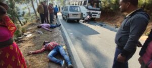 बैजनाथ पुलिस क्षेत्र के अंतर्गत हरिद्वारछीना के पास एक केमू बस व बाइक में भिड़ंत हो गई। इस हादसे में बाइक सवार फौजी की मौत हो गई। पीछे बैठे साड़ू भाई गंभीर रूप से घायल हो गया। उसे सीएचसी बैजनाथ भर्ती किया गया। प्राथमिक उपचार के बाद जिला अस्पताल रेफर किया गया है। दोनों साड़ू भाई तीसरे साड़ू भाई से मिलने गागरीगोल जा रहे थे। तीसरा साडू भाई उनके घर पहुंचने का इंतजार कर रहा था,पर कुदरत को कुछ और ही मंजूर था, हादसे की सूचना मिलते ही परिजनों में शोक की लहर दौड़ गई।सूचना के बाद पुलिस मौके पर पहुंची और शव कब्जे में लेकर आगे की कार्रवाई में जुट गई है।बैजनाथ पुलिस से मिली जानकारी के अनुसार बुधवार की शाम चार बजे बस संख्या यूके 04 पीए-0954 गरुड़ से बागेश्वर की ओर जा रही थी। विपरीत दिशा से आ रही बाइक संख्या-यूके 02 ए-8418 की बमराड़ी के पास हरिद्वारछीना के समीप बस से जोरदार भिडंत हो गई। जिससे बाइक में सवार उतरौड़ा, कपकोट निवासी नवीन चंद्र पुत्र पदम राम उम्र 38 वर्ष और फौजी काफलिग़ैर तहसील के बोहाला, धुराफाट क्षेत्र निवासी देवेंद्र कुमार पुत्र दीवान राम 26 वर्ष गंभीर रूप घायल हो गए। पुलिस के अनुसार गंभीर रूप से घायल देवेंद्र कुमार ने मौके पर ही दम तोड़ दिया।