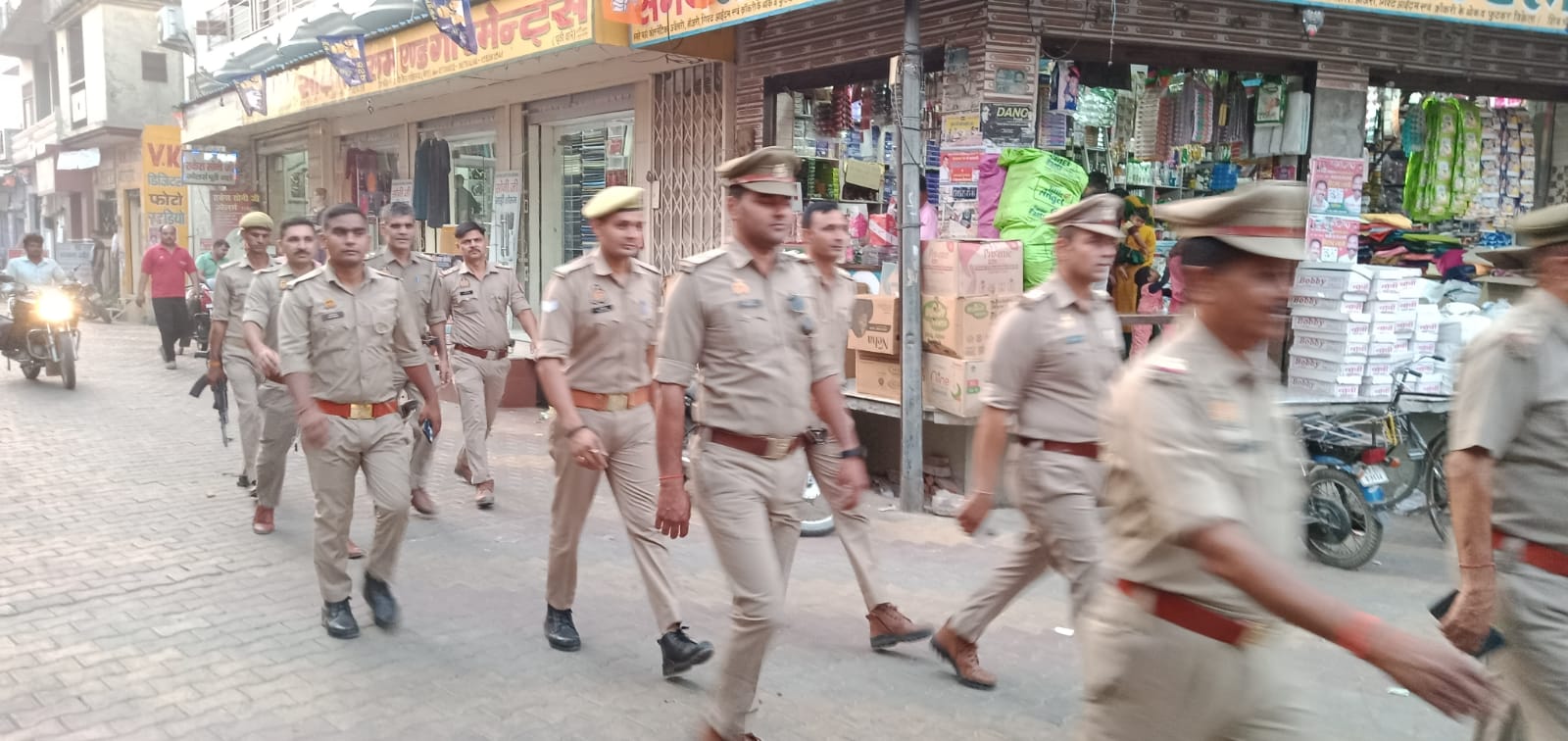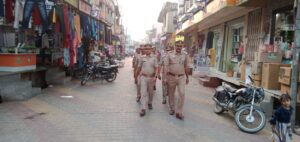 आपको अवगत करा दें परीक्षितगढ़ चुनाव संपन्न होने पर परीक्षितगढ़ पुलिस ने मैं फोर्स के साथ निकाला फ्लैग मार्च जो किठौर स्टैंड से शुरू होते हुए मंडी भगत सिंह चौक परीक्षितगढ़ मेन बाजार शिव चौक मोहल्ला होते हुए थाना परीक्षितगढ़ में संपन्न हुआ इस मौके पर थाना अध्यक्ष पंकज सिंह मैं फोर्स के साथ मौके पर मौजूद रहे व चुनाव संपन्न होने के बाद किसी प्रकार का हुडदंग ना हो इसके लिए उन्होंने स्थान स्थान पर चेकिंग अभियान चलाया