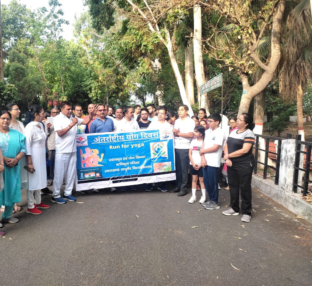 ऋषिुकल राजकीय आयुर्वेद महाविद्यालय से रानीपुर मोड़ तक अन्तर्राष्ट्रीय योग दिवस हेतु जनजागरण जागरूकता के लिए योगा दौड़ का आयोजन किया गया। योगा दौड़ का शुभारम्भ ऋषिकुल राजकीय आयुर्वेद महाविद्यालय के परिसर निदेशक प्रो0/डा0 डी सी सिंह एवं इडियन रेडक्रास सचिव डा0 नरेश चौधरी ने संयुक्त रूप से हरी झण्डी दिखाकर किया। योगा दौड़ ऋषिकुल से प्रारम्भ होकर मालवीय चौक ,रानीपुर मोड़ से होकर वापिस ऋषिकुल राजकीय आयुर्वेद महाविद्यालय में सम्पन्न हुई।