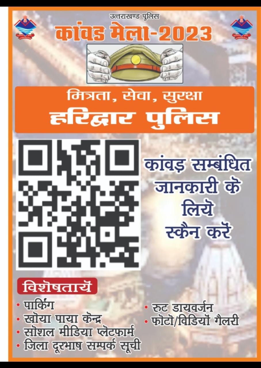 हरिद्वार पुलिस ने नई पहल को धरातल पर उतारते हुए कांवड यात्रा 2023 में भोले भक्तों की सुविधा के लिए QR Code जारी किया है।