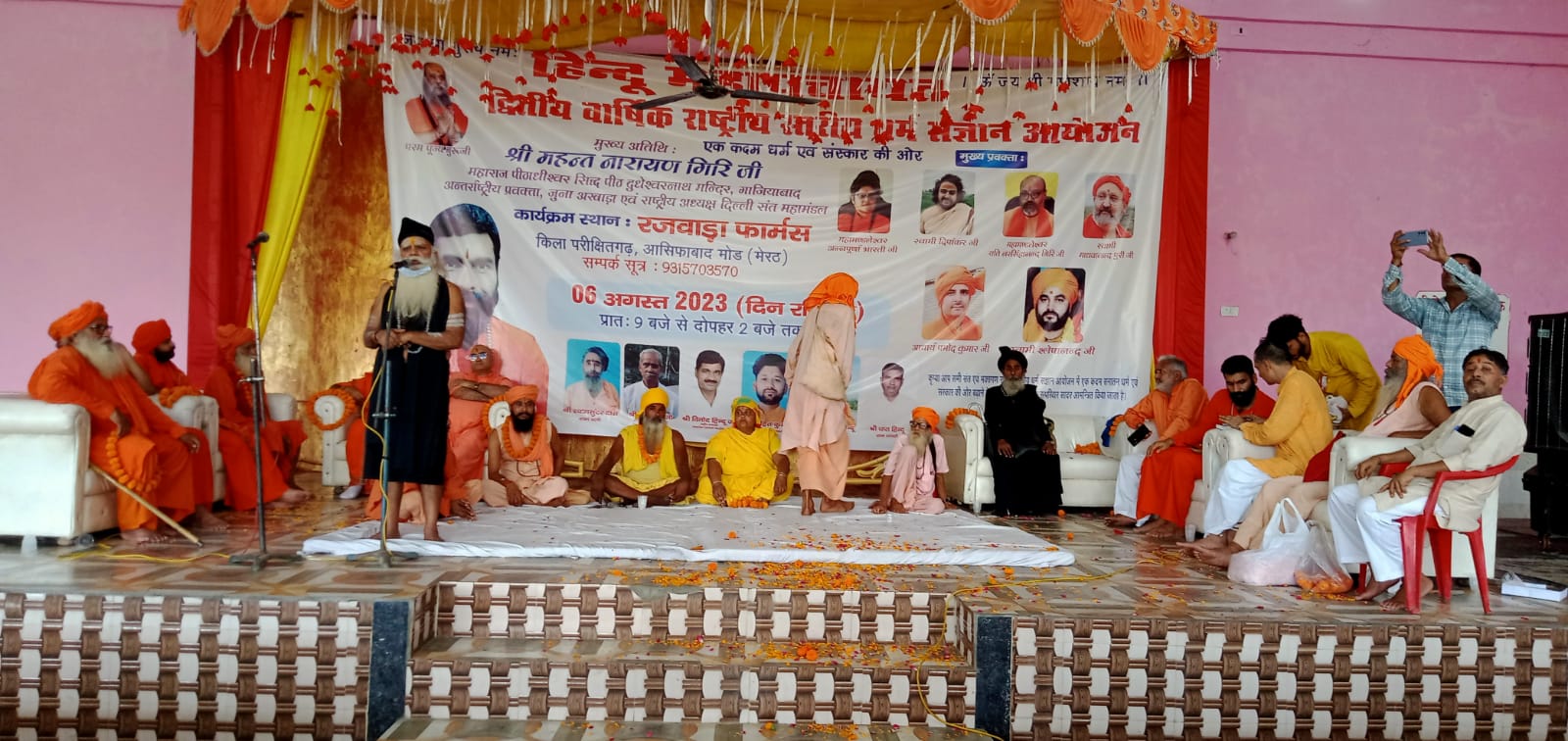परीक्षितगढ़ नगर में रजवाड़ा फार्म हाउस में हिंदू महापंचायत दूसरे राष्ट्रीय स्तरीय सनातन धर्म संज्ञान का आयोजन किया गया जिसमें सभी लोगों को धर्म व संस्कार से जीवन व्यतीत करने का आग्रह किया गया कार्यक्रम का शुभारंभ हवन यज्ञ मंत्रोच्चारण एवं आहुति देकर किया मुख्य अतिथि स्वामी गिरिराज नंद गिरी ने कहा कि हम सब लोगों को हिंदू धर्म के संस्कारों में रहकर चल सभी धर्म आगे बढ़ाएं यदि कोई धार्मिक लोगों का उत्पीड़न करता है उसके लिए एकजुट होकर आपसी भाईचारा के साथ निपटाए ताकि देश में सभी धर्म के लोग रह सके।