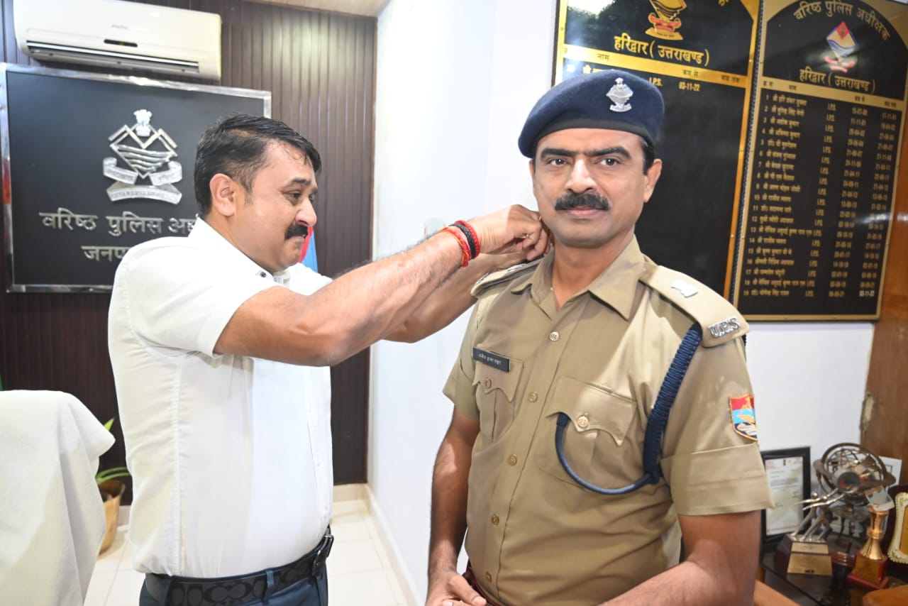 जिसके क्रम में आज एसएसपी हरिद्वार श्री अजय सिंह द्वारा CO से ASP पद पर पदोन्नत होने पर श्री मनोज ठाकुर के कंधों पर अशोक स्तंभ लगाकर बधाई देते हुए अग्रिम भविष्य के लिए शुभकामनाएं दी।