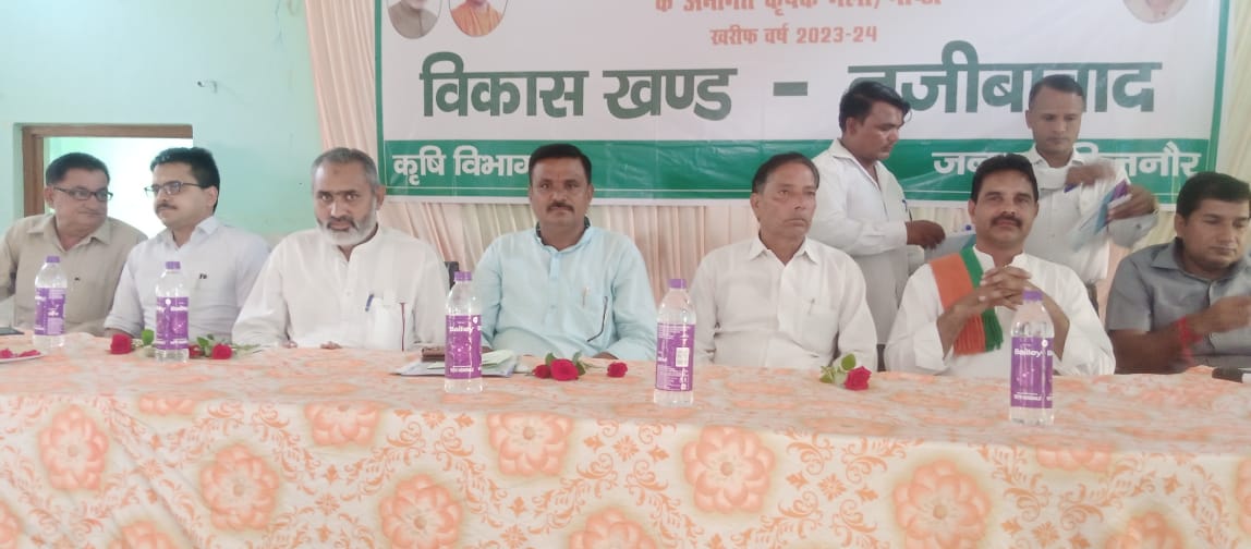 नजीबाबाद विकासखंड के डबाकरा हाल में कृषि विभाग द्वारा कृषि सूचना तंत्र के सुदृढ़ीकरण एवं कृषक जागरूकता कार्यक्रम एक दिवसीय किसान मेला/ गोष्टी कार्यक्रम आयोजित किया गया कार्यक्रम की अध्यक्षता मौ यूनुस सदस्य जिला पंचायत एवं संचालन रतिराम सिंह ने किया किसान मेला गोष्ठी का शुभारंभ वरिष्ठ भाजपा नेता चौधरी ईशम सिंह, सदस्य जिला पंचायत मौ यूनुस, विक्रम सिंह खोवे, ओंकार सिंह द्वारा संयुक्त रूप से सीता काटकर किया गया