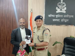 नवांगतुक जनपद एसएसपी प्रमेन्द्र डोभाल को “एम आई निर्भया” पुस्तक देकर सम्मानित करते हुए अपराध मुक्त समाज की मांग की।सोमवार को अधिवक्ता,लेखक व टीएसी सदस्य, संचार मंत्रालय भारत सरकार डा0 अरविंद कुमार श्रीवास्तव के नेतृत्व में वकीलों का एक प्रतिनिधिमंडल मिला।