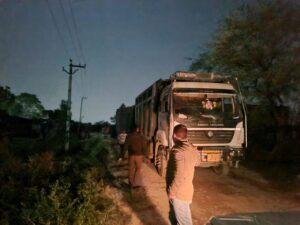 खनन विभाग की टीम को अवैध खनन की सूचना प्राप्त होने पर देर रात 10.30 बजे कटारपुर की ओर गस्त पर गयी थी। जिसमें कटारपुर के पास 02 ट्रक उपखनिज कोरसेंड भरे आते दिखे। जिनके सम्बंधित में खान निरीक्षक ने उपखनिज सम्बंधित दस्तावेज मांगे गये, तो दोनों वाहन चालक वाहनों में भरे उपखनिज सम्बंधित वैध दस्तावेज नही दिखा पाये। जिससे वाहनों में अवैध उपखनिज भरे होने की पुष्टि हुयी।