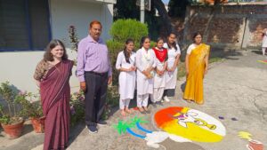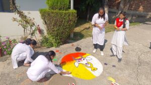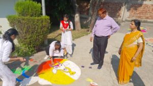 भाषा उत्सव पर छात्राओं ने रंगोली सजाई
