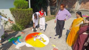 भारतीय भाषा उत्सव के अवसर पर कन्या गुरुकुल परिसर हरिद्वार की छात्राओं ने रंगोली बनाई।छात्राओं ने रंगोली के माध्यम से भारतीय संस्कृति से जुड़े विभिन्न पक्षों को भूमि पर उकेरा। रंगोली निर्माण में कवलजीत ,मुस्कान,वैशाली,प्रियंका,साक्षी मौर्य,अंशिका,आरती,राधा,केसर ,प्रज्ञा,निमिशा,साक्षी और रिद्धि ने प्रतिभाग किया। आर्ट प्रदर्शनी में सोनाली ,मोनिका और निष्ठा चौहान ने मंडाला आर्ट से जुड़ी पेंटिंग का प्रदर्शन किया।