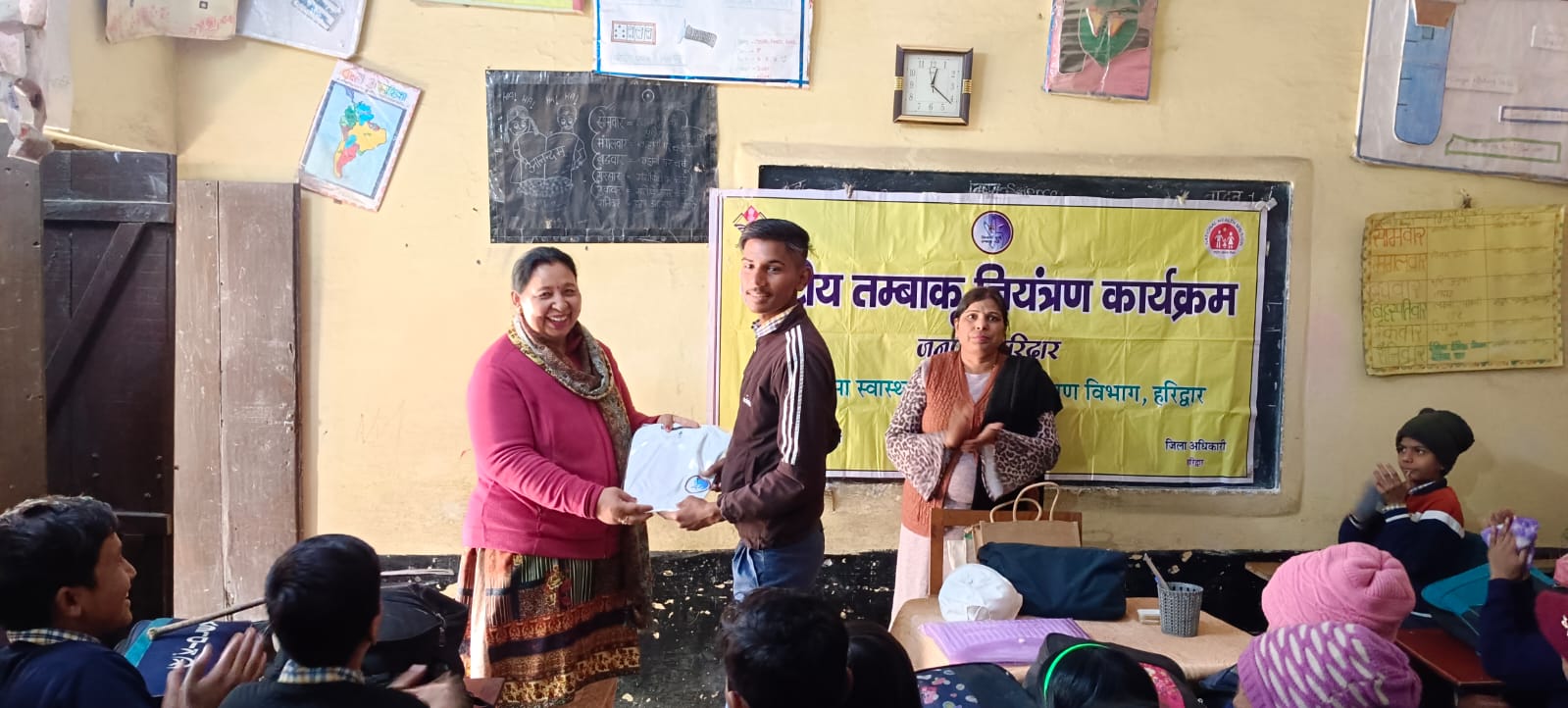 राष्ट्रीय तंबाकू नियंत्रण कार्यक्रम के अंतर्गत जिला तंबाकू नियंत्रण प्रकोष्ठ हरिद्वार व सहयोगी संस्था बहुउदय लोक सेवा संस्थान हरिद्वार, सलाम मुंबई फाउंडेशन,एन एस एफ मुंबई के सहयोग से बहादराबाद ब्लॉक , रुड़की ब्लॉक के स्कूलों में तंबाकू के सेवन से होने वाले दुष्प्रभाव व बीमारियों एवं कोटपा अधिनियम 2003 की मुख्य धाराओं 4,5,6 के बारे में विस्तृत रूप से जानकारी दी गई।