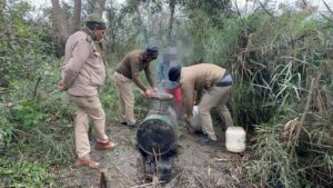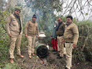 20 लीटर अवैध कच्ची शराब बनाते हुए मय भट्टी उपकरण सहित एक अभियुक्त को धर दबोचा
