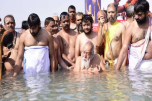 इस दौरान उन्हें खुले तौर पर मास्क और सामाजिक दूरी के नियम का उल्लंघन करते हुए देखा गया। हाल में अखिल भारतीय अखाड़ा परिषद के प्रमुख महंत नरेंद्र गिरि पिछले हफ्ते कोरोना वायरस से संक्रमित पाए गए थे और ऋषिकेश में स्थित एम्स हॉस्पिटल में उन्हें भर्ती किया गया था।