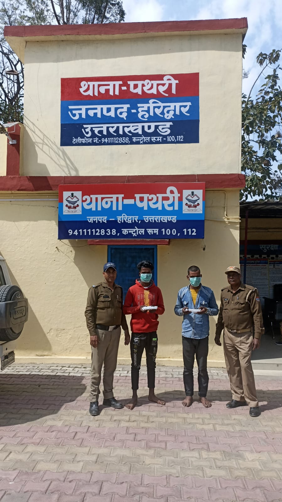 मुखबिर की सूचना पर हेड कांस्टेबल शिवराज, कांस्टेबल आदेश चौहान ,रविंद्र बिष्ट ने जोगीवाला से संदिग्ध अवस्था मे घूमते हुए दो युवको को रुकने को इशारा किया, लेकिन वह पुलिस को देखकर भागने लगे। पुलिस ने पीछा कर उन्हें पकड़ लिया । युवको के पास से एक-एक चैक अवैध चाकू बरामद हुआ।