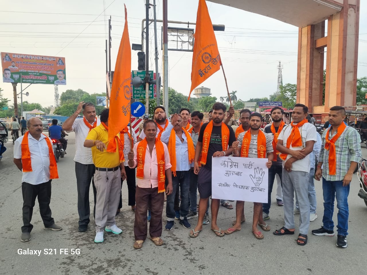 आपको बता दे की मंगलोर विधानसभा में हुए उपचुनाव में काजी निजामुद्दीन ने 428 वोटो से जीत दर्ज की थी जीत की खुशी मनाने के लिए भीड़ एकत्र हुई आरोप है कि भीड़ के द्वारा पुलिस कर्मियों के साथ धक्का मुक्की व समाज के लोगो पर पत्थर फेके गए, जिसका विरोध करते हुए आज जटवाड़ा ज्वालापुर में देवभूमि भैरव सेना संगठन के शहर अध्यक्ष बक्शी चौहान के नेतृत्व में धरना प्रदर्शन किया गया