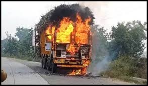 हरिद्वार:- श्यामपुर थाना क्षेत्र में हरिद्वार-नजीबाबाद हाईवे पर गन्ने से लदे खड़े एक ट्रक में अचानक आग लग गई। देखते ही देखते ही आग बढ़ गई और चालक-परिचालक ने भागकर अपनी जान बचाई। सूचना पर पहुंची पुलिस और अग्निशमन विभाग की टीम ने आग पर काबू पाया। कड़ी मशक्कत कर आग को बुझा दिया गया। सामने आया कि खाना बनाने के दौरान आग लगी है।