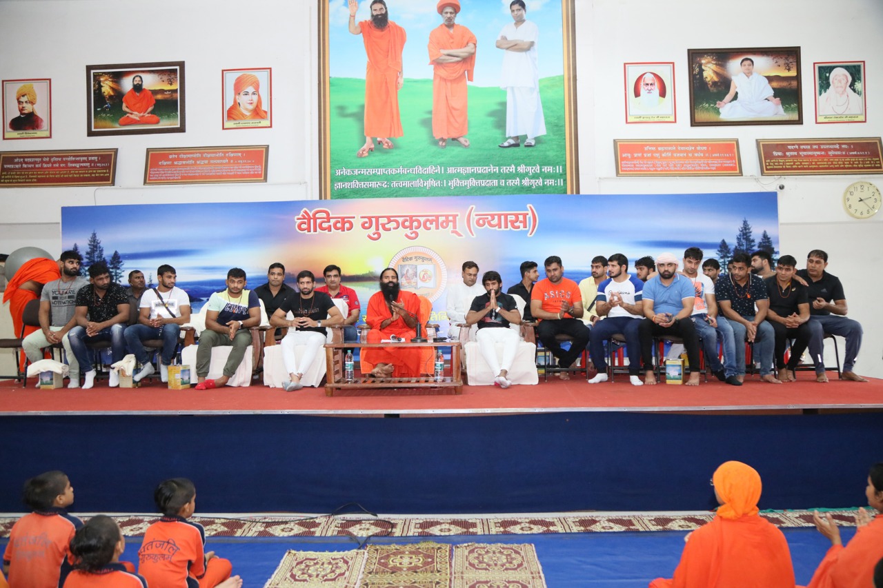 स्वामी जी ने पतंजलि विश्वविद्यालय में तैयार हो रहे कुश्ती के खिलाडि़यों को इन रेस्लरों से कुश्ती के गुर सिखवाए।