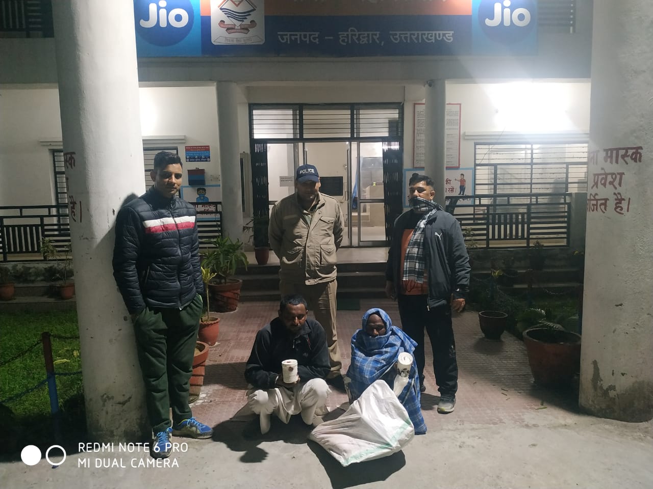 गौवंश संरक्षण स्क्वायड गढ़वाल परिक्षेत्र हरिद्वार पुलिस टीम ने सुचना पर गांव मुस्तफाबाद के पास गन्ने के खेत में छापामारी कर गोवंश, औजार सहित दो बाइक बरामद की है। साथ ही पुलिस टीम ने दो गो तस्कर को गिरफ्तार किया है। जबकि मोके से चार तस्कर फरार हो गये। पुलिस के अनुसार एसएसपी हरिद्वार निर्देशन मे गौ वंश उप निरीक्षक दीपक लिंगवाल के नेतृत्व में पुलिस टीम ने मुखबिर की सूचना मिली कि ग्राम मुस्तफाबाद के पास कुछ लोग गन्ने के खेत मे गौकशी कर रहे हैं । सूचना मिलते ही पुलिस टीम ने मोके पर पर पहुँची। पुलिस को देख गो तस्करो ने भागने का प्रयास किया पुलिस ने उनका पीछा कर दो तस्करो को दबोच लिया। मोके से चार गो तस्कर फरार हो गये। पुलिस ने मोके से दो बाइक, 290 केजी गोवंश, बाट तराजू, कुल्हाड़ी, दो छुरिया, आदि बरामद की। पुलिस पूछताछ पर उन्होंने अपने नाम इलियास उर्फ सुक्कड़ निवासी मरगूबपुर व शहजाद निवासी मस्जिद वाली गली रामपुर रुड़की बताये। उन्होंने फरार साथियो के नाम शहनवाज उर्फसोनू ,शाहरुख उर्फ मोना , वहीद , सत्तार निवासीगण ग्राम मुस्तफाबाद बताये। मौके पर पशु चिकित्सा अधिकारी बेलड़ी डा0 उमेश भट्ट को बुलाकर गोमांस का परीक्षण कराया जिस में गौ मांस होने की पुष्टि की गई मांस को गड्ढा खोदकर जमीन में दबाया गया। पुलिस ने आरोपितों के उत्तराखंड गौ वंश संरक्षण अधिनियम के तहत मुकदमा दर्ज कर पकड़े गये आरोपितों को जेल भेज दिया।